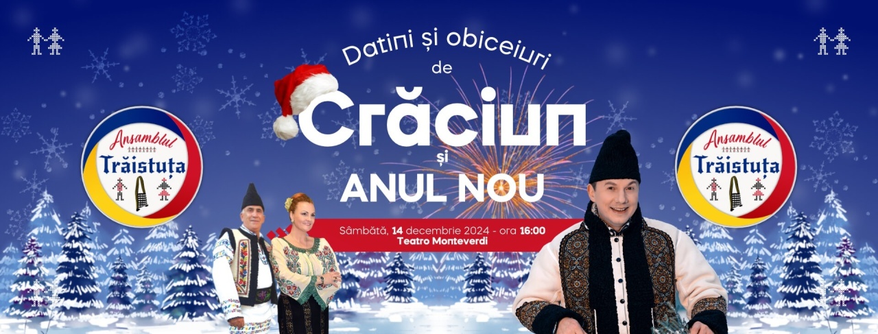 Pe data de 14 decembrie ora 16.00 vă invităm la Spectacolul "Datini şi obiceiuri de Crăciun și Anul Nou" a-V-a ediție găzduit de Ansamblul Trăistuța - Cremona la Teatro Monteverdi.